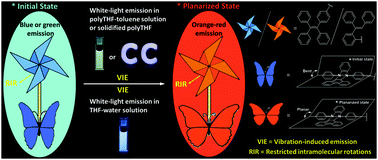 Single-molecular white-light emissions were achieved through the simple but judicious combination of vibration-induced emission (VIE) and aggregation-induced emission (AIE) mechanisms.