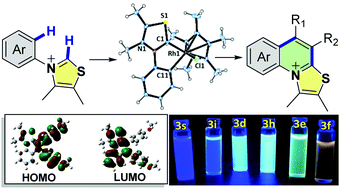 Metal–N,S-heterocyclic carbene intermediates are conveniently generated and utilized for the first time to construct N,S doubly-doped cationic tricyclic organic molecules which exhibit easily-tuneable emission.