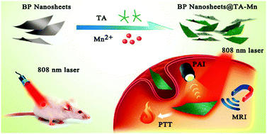 Manganese-phenolic network-coated black phosphorus nanosheets were developed for magnetic resonance/photoacoustic dual-modal imaging-guided photothermal therapy.