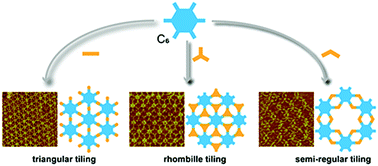 Two-dimensional covalent triangular, rhombille and semi-regular tilings are constructed successfully using C6-symmetric building blocks via on-surface Schiff base reaction.