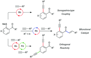 A rhodium(I) catalyst mediates selective and efficient coupling reactions between arylmethylsulfides and terminal alkynes to provide Sonogashira-like products.