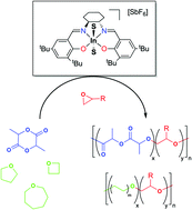 Cationic indium salen complexes are active catalysts for the ring opening polymerization of epoxides and other less strained cyclic ethers. Moreover, they are competent catalysts in the copolymerization of rac-lactide and epoxides to high molecular weight copolymers. Preliminary kinetic investigations with different cationic complexes revealed subtle effects of their solvent donors in the initiation rates of polymerization of epoxides.