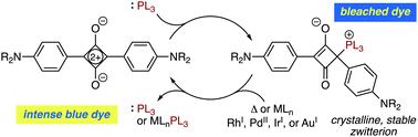 Nucleophilic addition of phosphorus(III) derivatives to squaraines: colorimetric detection of transition metal-mediated or thermal reversion